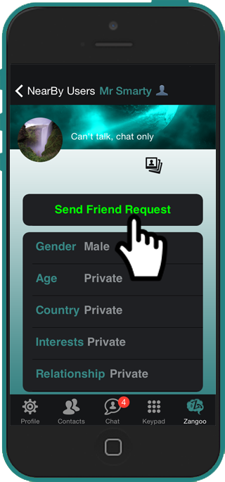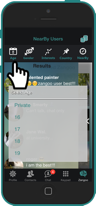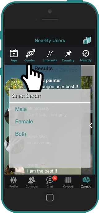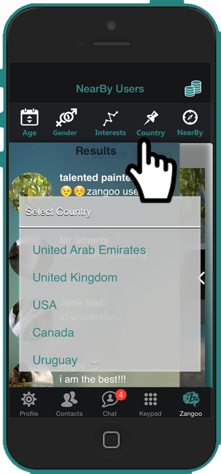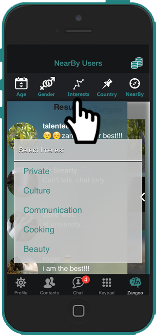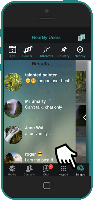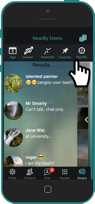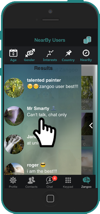 ابحث عن مستخدمين زانجو من حولك ,اختر العضو المفضل لديك , و ابدا بارسال التحيات